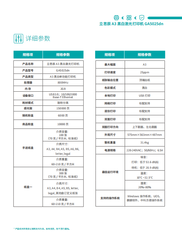 立思辰 GA5025dn A3 黑白打印机 A3黑白激光单功能打印机