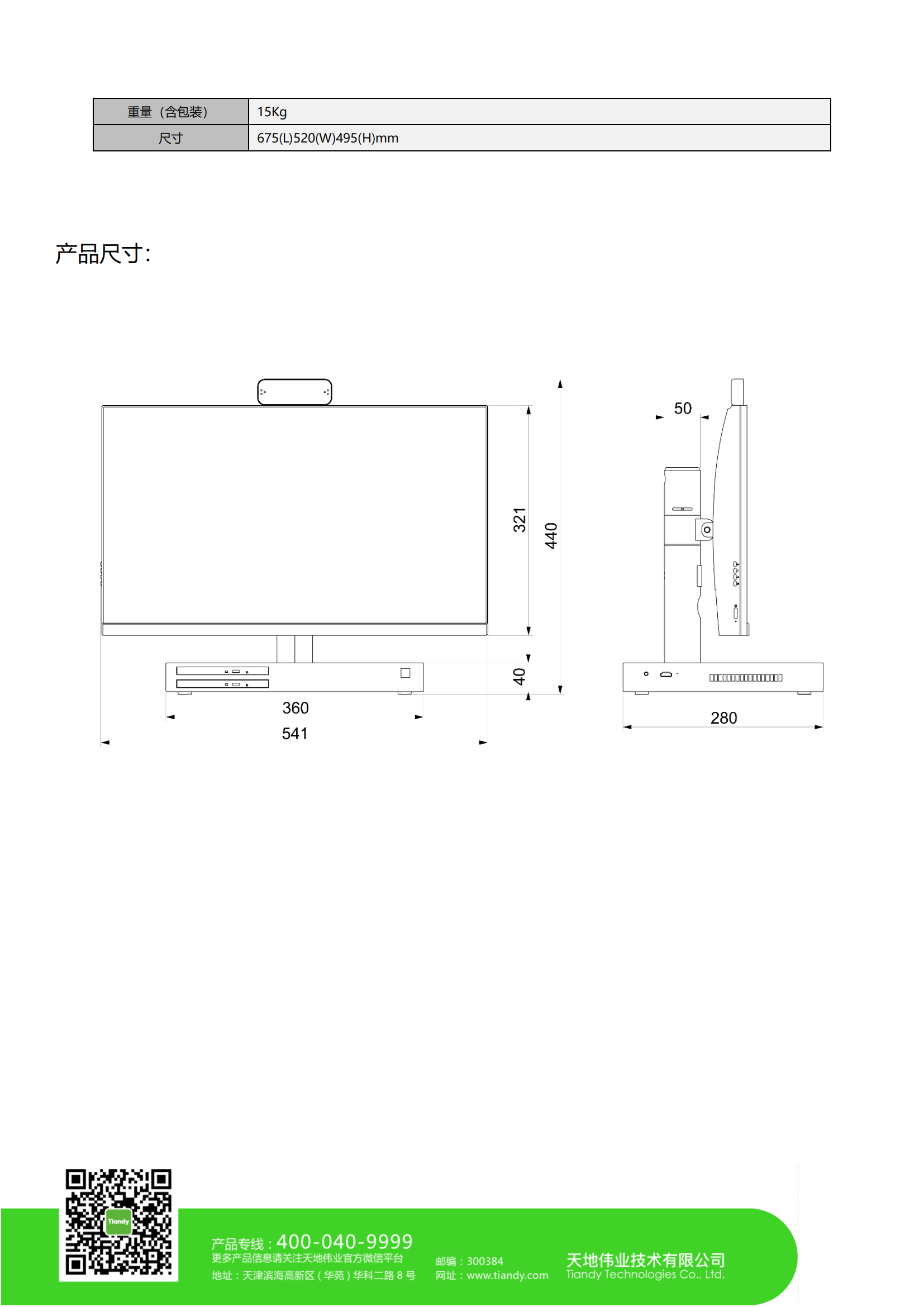 天地伟业 TC-I82PN 平板式微型计算机 飞腾 D2000/16GB/128GB/24寸/银河麒麟 V10/键鼠