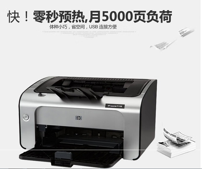 惠普 P1108 A4 黑白打印机 打印速度 20页/分;打印分辨率1200*1200dpi;端口 USB
