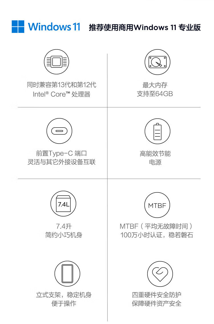 联想 M755E 台式计算机 I5-12400/8G*2/1T+256G/无光驱/集成/W11 23.8液晶