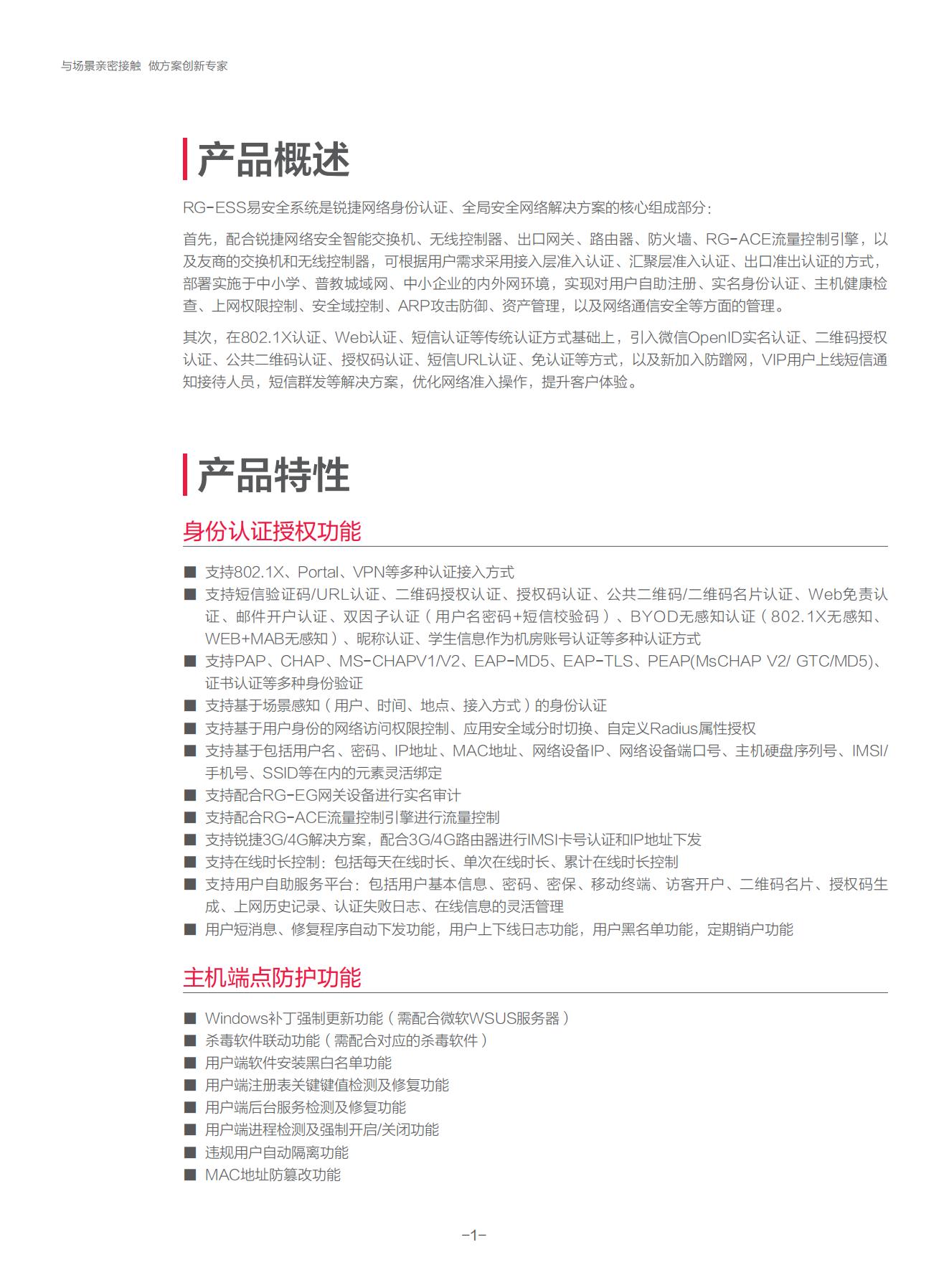 锐捷 RG-ESS 1000 网络检测设备 易安全系统 支持802.1X、Portal、VPN等多种认证接入方式