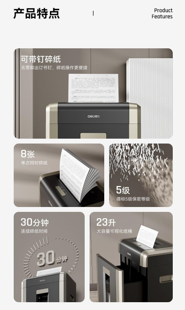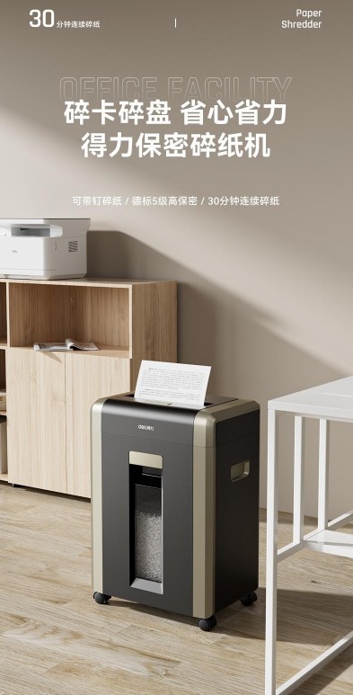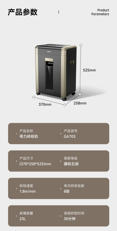 得力 GA703 碎纸机 得力(deli)GA703 碎纸机5级保密办公23L纸桶家用可碎卡碎光盘 8张 30分钟 5级