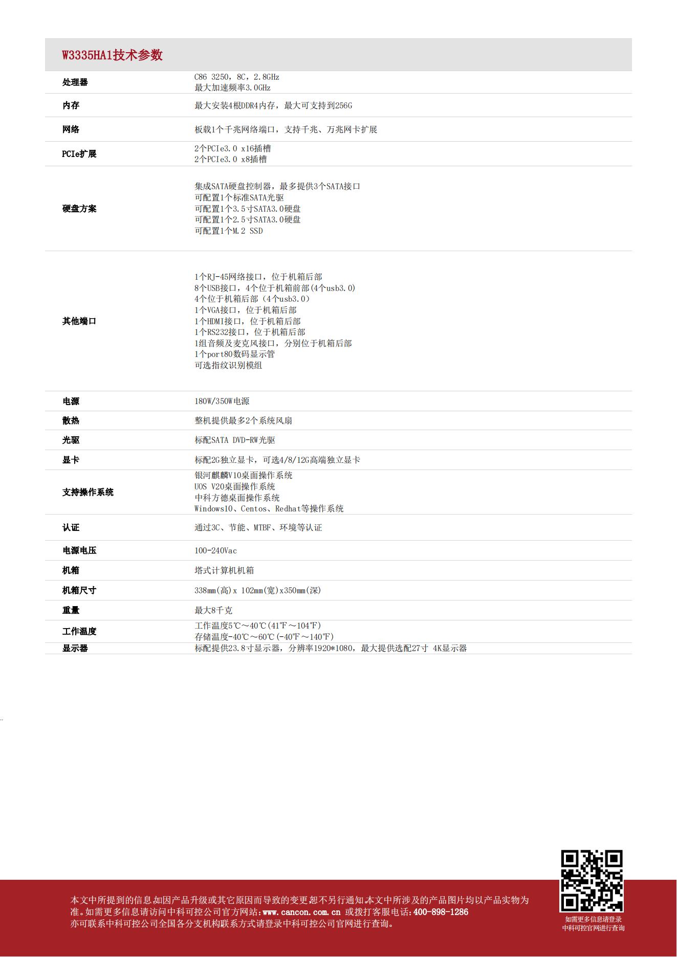 中科可控/Suma   W3335HA1   台式计算机